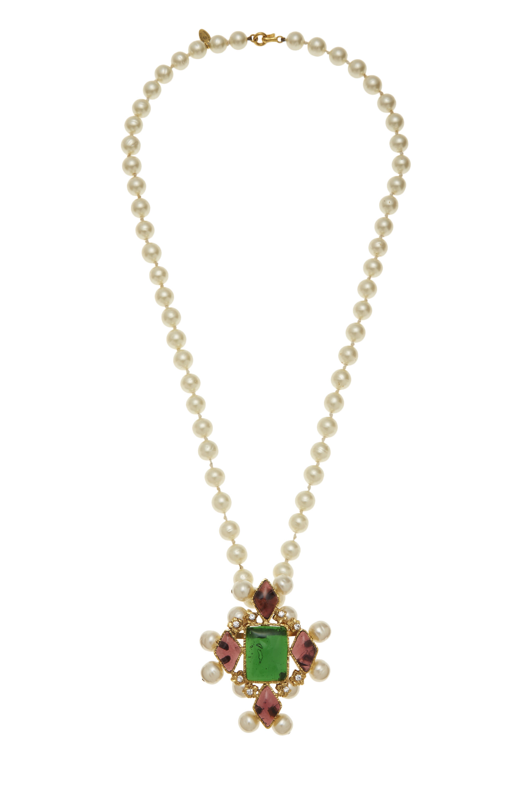 Chanel - Gold Filigree & Gripoix Pendant Necklace